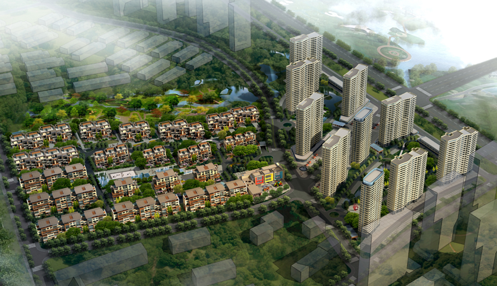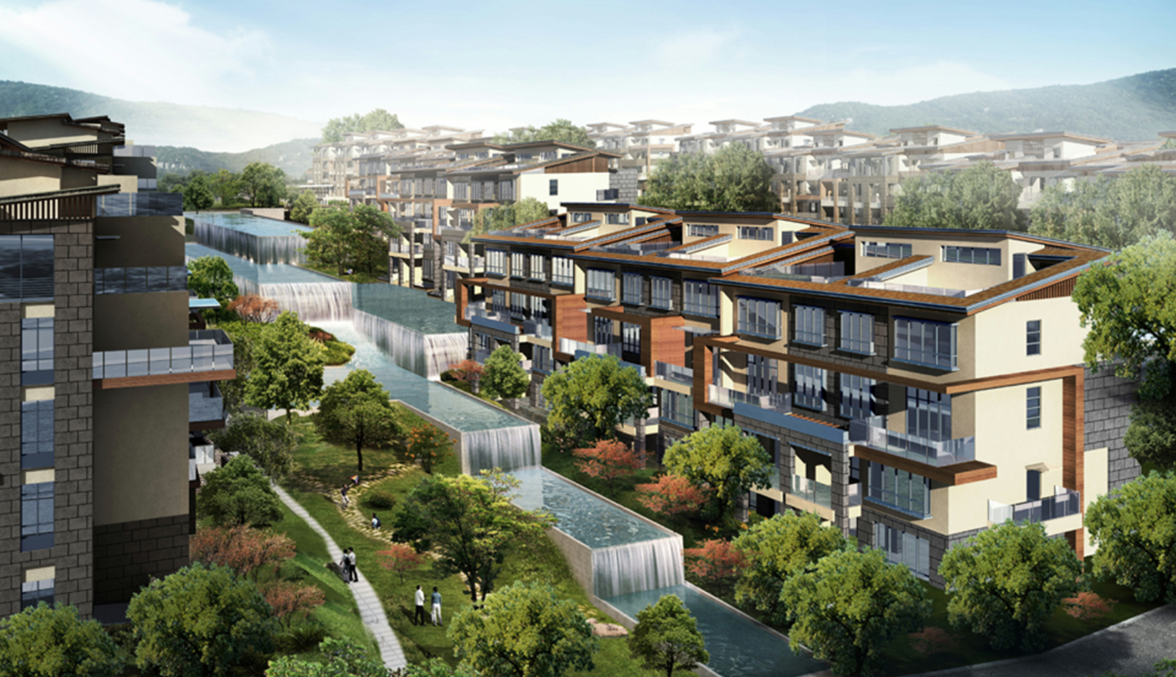 在總體的規(guī)劃設(shè)計(jì)中,設(shè)計(jì)師的靈感主要來源于項(xiàng)目中現(xiàn)存的分布于場地中央和南北地塊的數(shù)處面積不大但卻別具自然風(fēng)情的水體和山頂雨水沖刷所形成的沖溝。