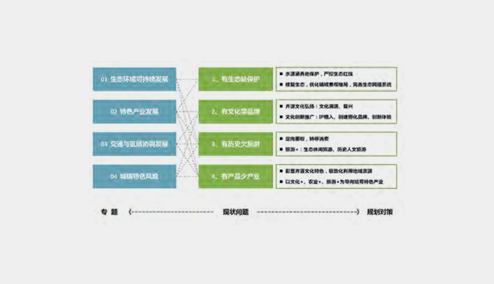 發(fā)展策略: 生態(tài)環(huán)境可持續(xù)發(fā)展、齊源文化復興、基礎產業(yè)提升、基礎設施完善、公共服務提質特色產業(yè)體系: 凸顯營丘齊源文化特色,轉化、極致化利用地域特色資源,以”文化+“、”農業(yè)+“、”旅游+”為特色產業(yè)培育導向,完善、提升產業(yè)鏈價值鏈,構建一個特色鮮明、主題明確的特色產業(yè)體系。