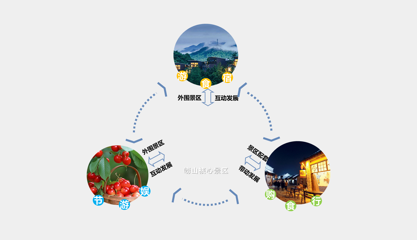 項(xiàng)目規(guī)劃目標(biāo):在國(guó)土空間規(guī)劃、生態(tài)修復(fù)城市修補(bǔ)背景下,重新定義村莊發(fā)展格局;依托嶗山風(fēng)景區(qū)旅游品牌、聲譽(yù)、影響力,培育村莊獨(dú)特的旅游景點(diǎn)、活動(dòng)項(xiàng)目,吸引外圍景區(qū)游覽客群;在旅游游線、服務(wù)設(shè)施、活動(dòng)項(xiàng)目等方面,充分與嶗山主景區(qū)互動(dòng),打造分工明確、各有側(cè)重、各俱特色的旅游服務(wù)村落集群。