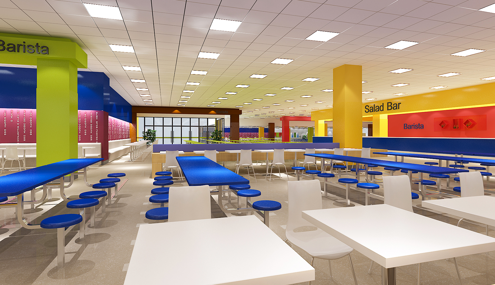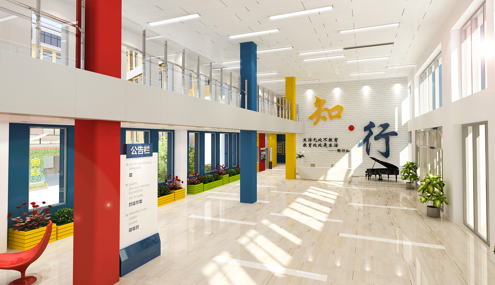設(shè)計(jì)追求空間設(shè)計(jì)的前瞻性,深入揣摩材質(zhì)、工藝與造型之間的關(guān)系,力圖體現(xiàn)現(xiàn)代化小學(xué)空間輪廓;設(shè)計(jì)堅(jiān)持以“人”為本的校訓(xùn),強(qiáng)調(diào)人性化設(shè)計(jì),因此注重生態(tài)、綠色、節(jié)能、環(huán)保、文化空間功能,輔以材質(zhì)、色彩的表達(dá),為寧夏路小學(xué)營造出了人性的、功能的、標(biāo)志化效果,為孩子創(chuàng)造-一個良好的視覺環(huán)境和心理健康發(fā)展的氛圍。