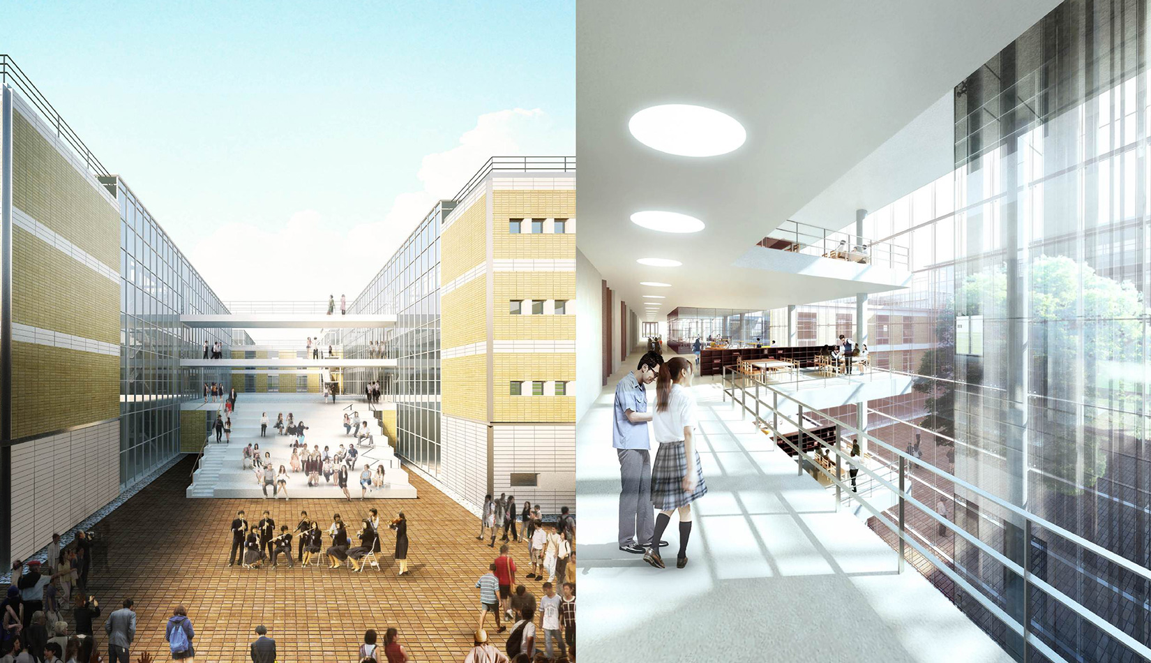 通過對功能、流線的科學(xué)整合與單體建筑的精心設(shè)計,運用現(xiàn)代的建筑語言營造富有強烈時代感的校園環(huán)境,并不斷探索開放、和諧、人文的校園設(shè)計策略,使建筑體現(xiàn)時代特征。