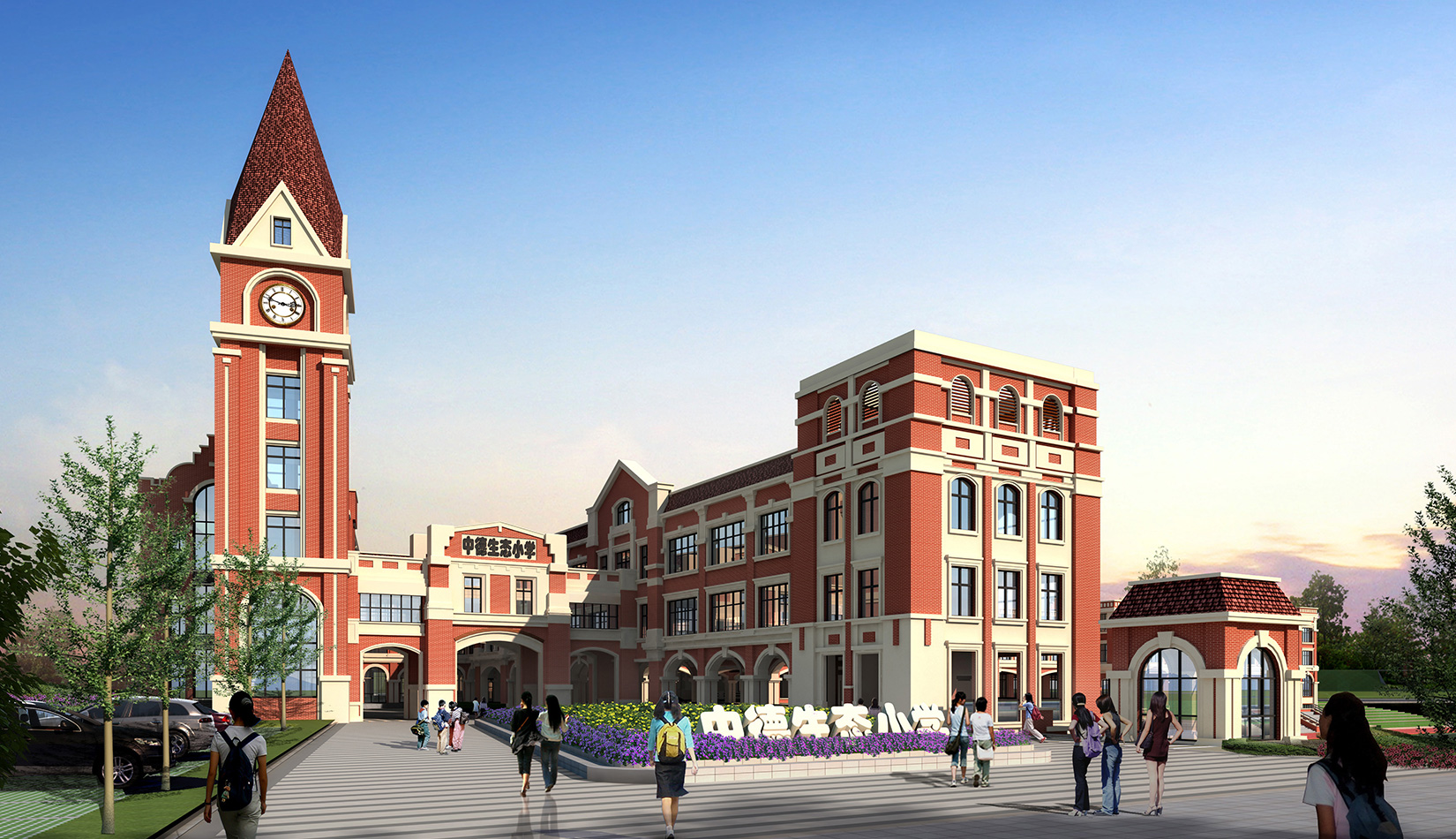 校園建筑風(fēng)格采用簡約歐式風(fēng)格,以明亮、歡快的紅磚作為校園主體色調(diào),通過淺色石材、線腳的穿插勾勒建筑輪廓,形成極具特色的歐式花園式校園。