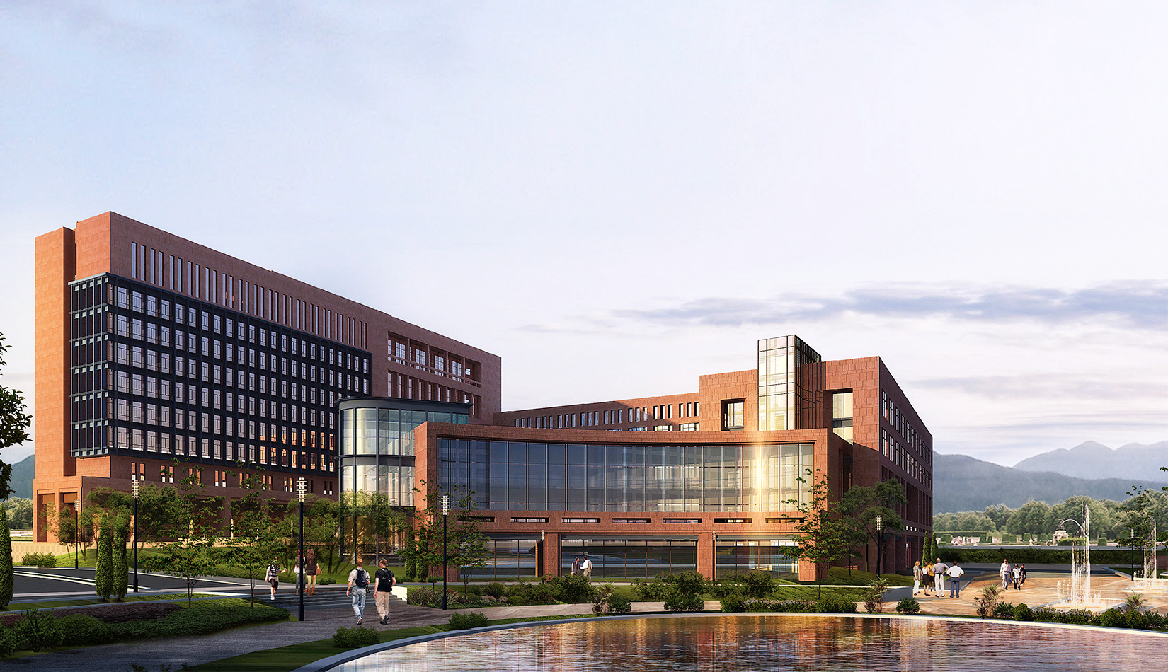 總體的規(guī)劃布局圍繞中心景觀廣場展開設(shè)計。首先從山區(qū)建筑布局師法自然,藏風(fēng)聚氣的傳統(tǒng)觀念出發(fā),結(jié)合現(xiàn)代科學(xué)嚴謹求真務(wù)實的態(tài)度,設(shè)計以東側(cè)入口廣場導(dǎo)入的中心景觀空間圍合展開規(guī)劃布局,總體上根據(jù)土地的使用性質(zhì)分為四個區(qū),分別是正對主入口北側(cè)的生活區(qū),南側(cè)的孵化中心區(qū),正對主入口廣場的科研辦公區(qū),以及整個用地最南端的產(chǎn)業(yè)開發(fā)區(qū),各個區(qū)既相互獨立同時又緊密聯(lián)系,功能上即考慮主導(dǎo)風(fēng)向又方便使用。
