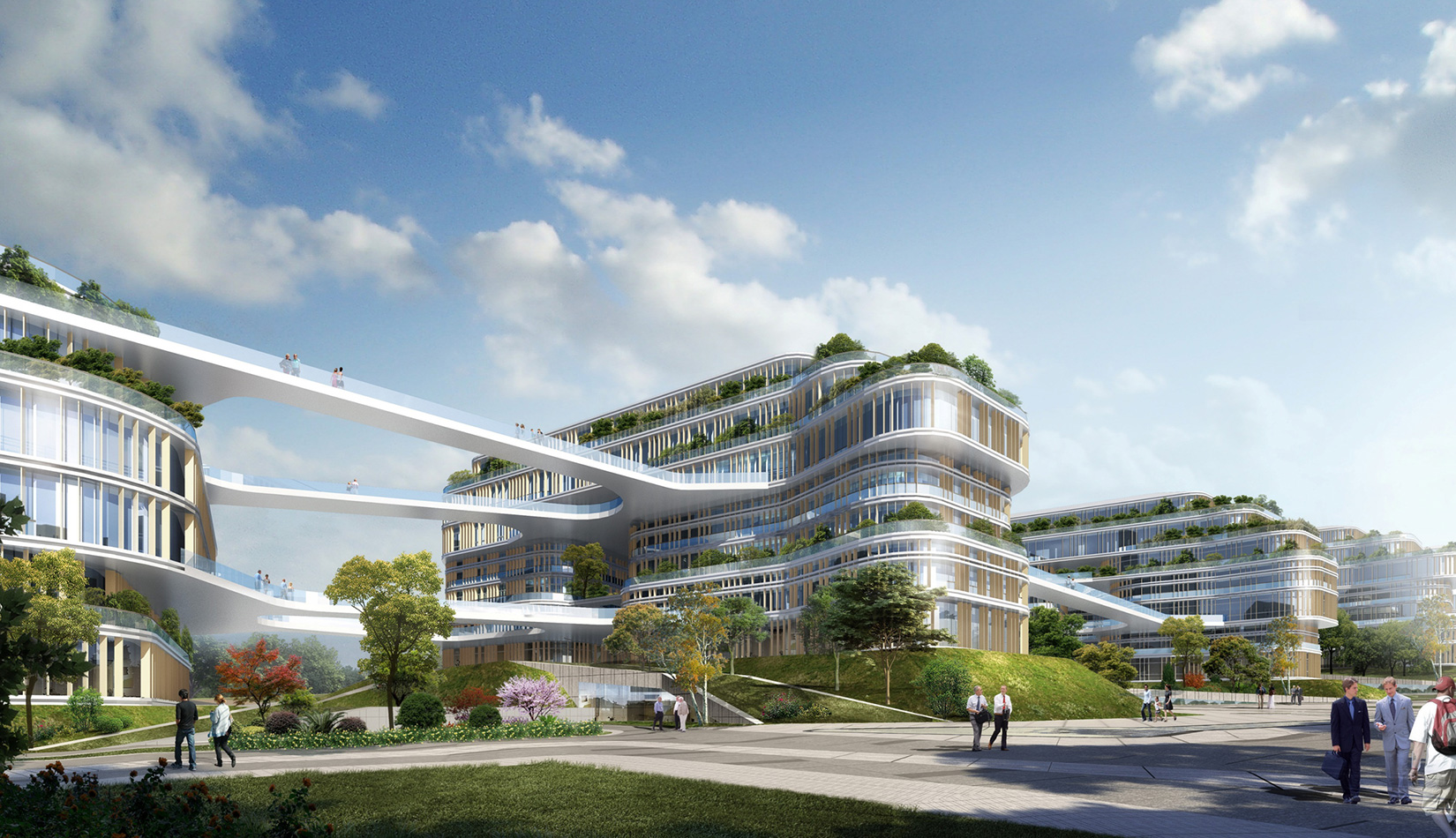 該項(xiàng)目以“流動(dòng)的星云”作為設(shè)計(jì)理念,順應(yīng)地形走向,溝通“山”“水”關(guān)系。