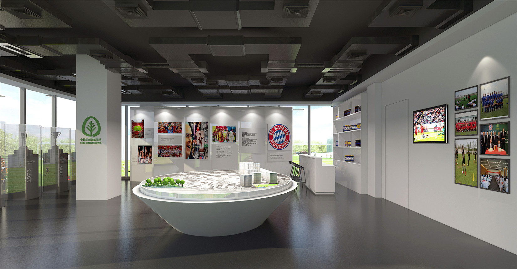 本次設(shè)計方案運(yùn)用后現(xiàn)代主義風(fēng)格的設(shè)計手法來展現(xiàn)中德兩國足球運(yùn)動的歷史及發(fā)展。迎合當(dāng)前環(huán)境下中德兩國在足球產(chǎn)業(yè)方面進(jìn)行的交流與合作,是中德體育促進(jìn)足球培訓(xùn)、商務(wù)推廣的窗口平臺,向人們展示足球精神的人文內(nèi)涵與魅力。