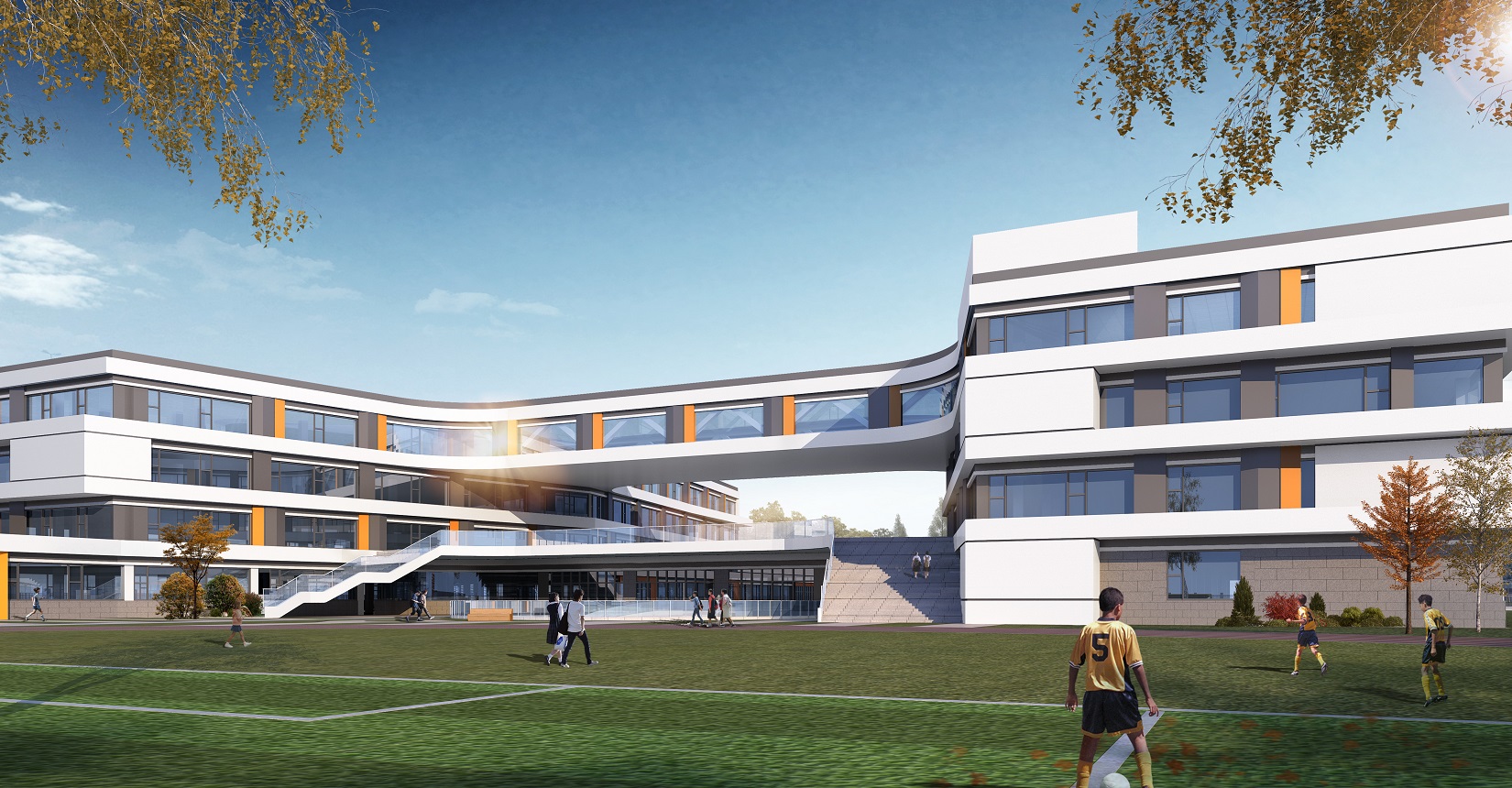 項目設(shè)計以“書籍”和“階梯”為靈感,將教學(xué)樓以退臺及錯落的形式展示“書籍”和“階梯”的理念,設(shè)計現(xiàn)代化“書本”校園,希望學(xué)生們在讀書中成長。